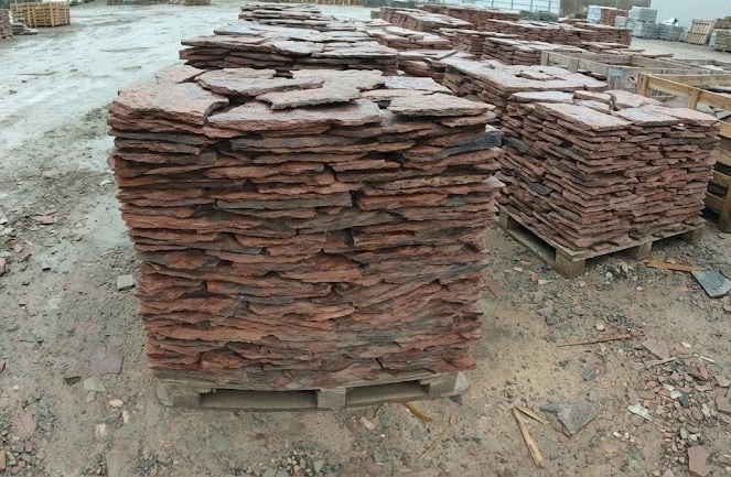 Плитняк песчаник дракон красный для облицовки цоколя, отмостки 20-35 мм